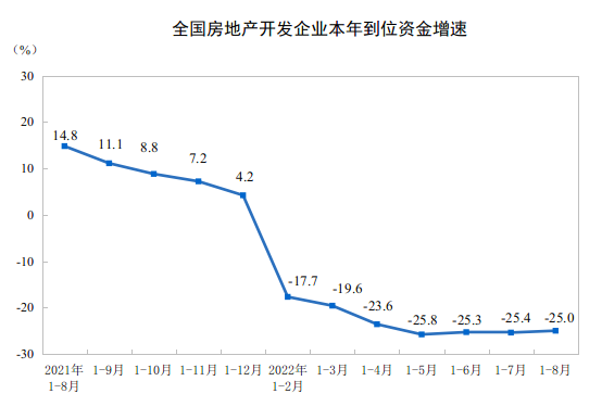 8月末,商品房待售面积54605万平方米,同比增长8.0%。其中,住宅待售面积增长15.1%。