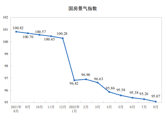 8月份,房地产开发景气指数(简称“国房景气指数”)为95.07。