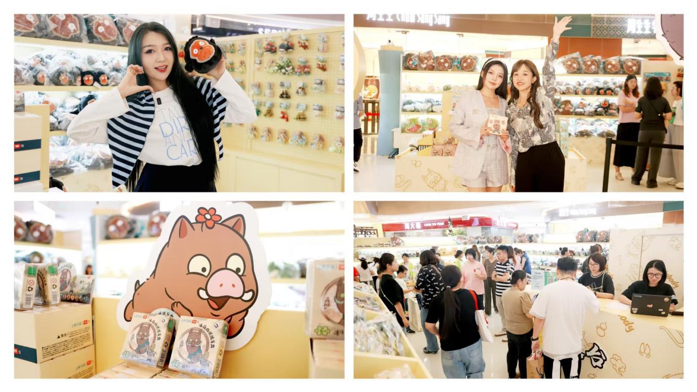 这里不仅是场景的复刻,更是情感的共鸣。快闪店内,400余款衍生品藏着满满的“打工人彩蛋”:印着“今天也想闯出浪浪山”的帆布包、写着“努力干活准没错”的笔记本、捏起来会发出“加油”声的小猪妖玩偶,每一件都像是为成年人量身定制的专属礼物。文艺快闪店变身“解压现场”,扮演小猪妖的售货员会主动给游客递上浪浪山加油贴——“国庆期间,妖你嘻行!”超多逗趣场景值得期待。