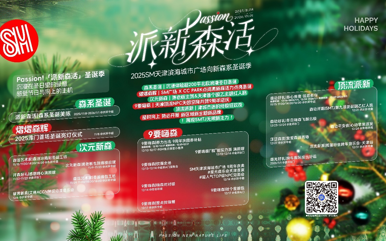 11月8日,SM天津滨海城市广场(以下简称“SM广场”)成功举办天津今年首场圣诞亮灯仪式,正式拉开以“派新森活”为主题的暖冬圣诞季序幕。以Passion的澎湃激情、向上生机的年轻精神作为内核,持续聚焦Z世代、深耕青年文化的潮流地标。