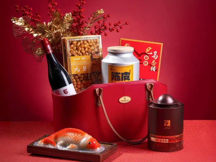 另有新春鸿运礼篮,将元贝、新会陈皮、椰汁年糕鱼等珍选之味,装入中国红的皮质礼篮,是馈赠亲友的理想之选。