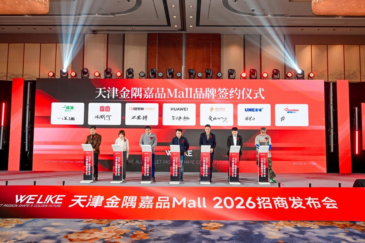 近日,以“WeLike未来 热爱成金”为主题的天津金隅嘉品Mall 2026招商发布会在天津香格里拉酒店隆重举办。在当前国家着力扩大内需、推动消费提质扩容,以及天津市大力完善城市商业体系、加快建设国际消费中心城市的战略背景下,本次发布会不仅是一场商业盛事,更是积极响应《城市商业提质行动方案》等宏观政策,服务天津城市发展蓝图,完善天津区域高品质商业配套的实质性举措。活动汇聚了东丽区政府代表、北京金隅集团股份有限公司高层领导、知名品牌商户及行业媒体代表,共同见证这一承载政策导向与城市升级期望的商业地标启航。发布会以科技感与场景化结合的沉浸式体验,全面展示了项目的核心优势与业态规划,标志着天津北部新区商业升级步入实质性阶段。精工之作,自得青睐。项目首阶段招商即创下签约率50.11%的佳绩,这不仅是一个数字,更是众多前瞻品牌与未来商业潜力的一次价值共鸣与双向奔赴,也映射出在消费升级浪潮下,市场对高品质、体验式商业供给的强烈期待。