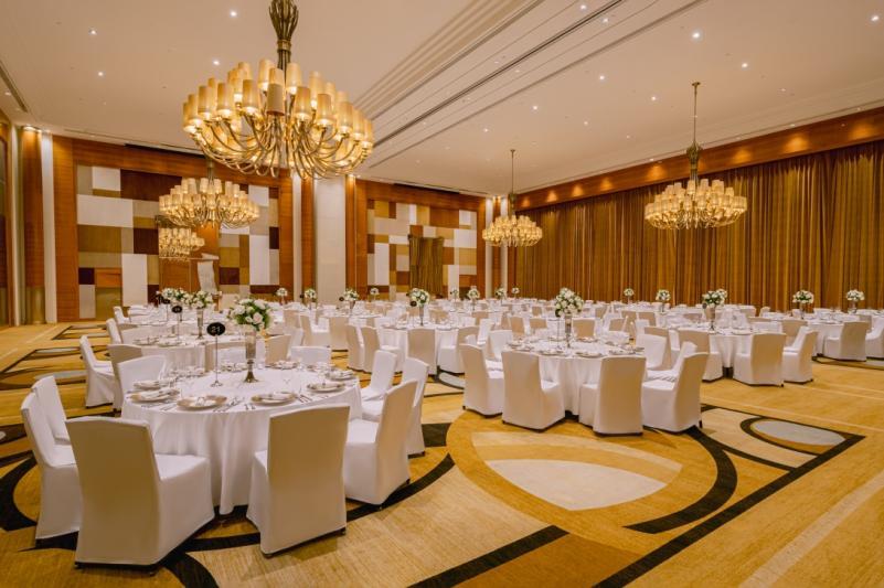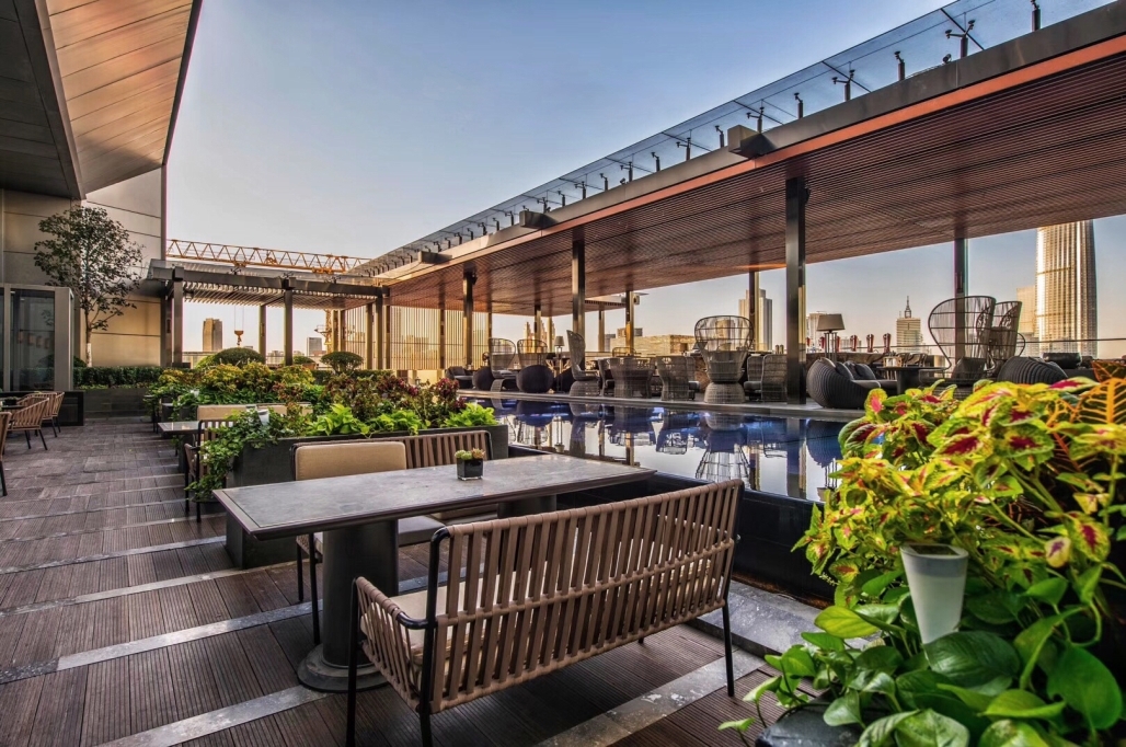 高挑开阔的大宴会厅可接载轿车直接驶入,同层配备专属新娘房及4个多功能厅,可灵活满足仪式前准备、亲友接待、小型派对等多样化需求。视野开阔的四季宴会厅,配备室外露台与雅致前廊,可供新人举办After Party;位于九层的空中花园,坐拥津城独树一帜的景观优势,亦可承接户外婚礼、求婚仪式、生日派对等活动。